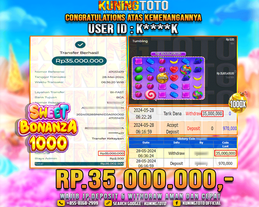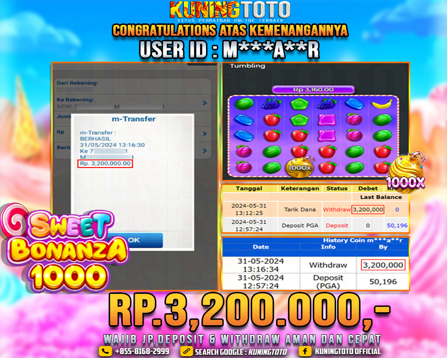 Bukti JP Slot Member KUNING TOTO 31 May 2024 Sweet Bonanza x1000 Memenangkan Jackpot Permainan Slot online sangat populer di…