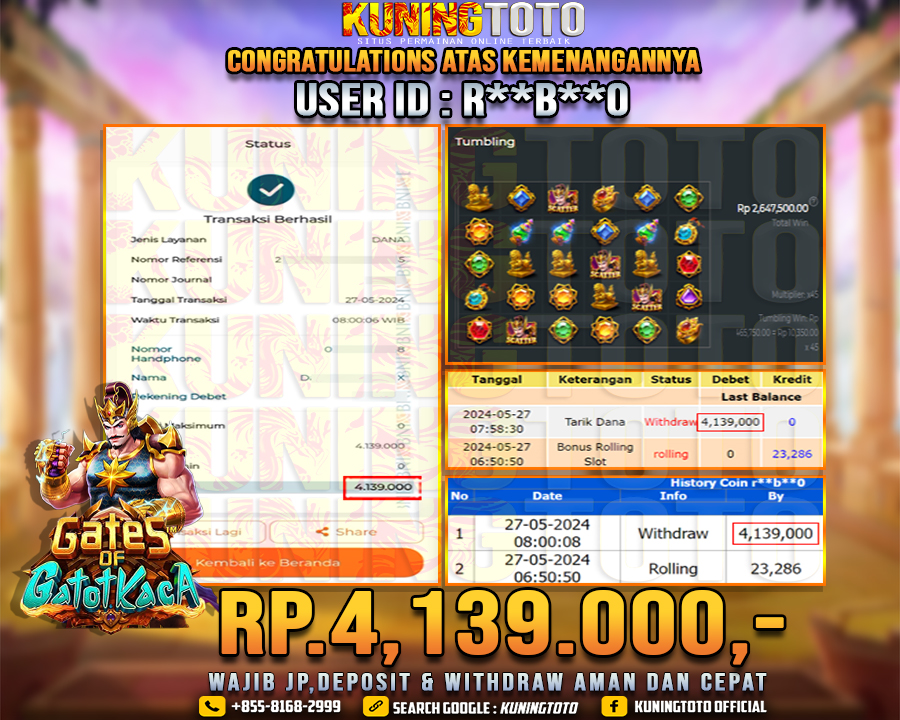 Bukti JP Slot Member KUNING TOTO 27 May 2024 Gate of Gatotkaca Memenangkan Jackpot Permainan Slot online sangat populer di…