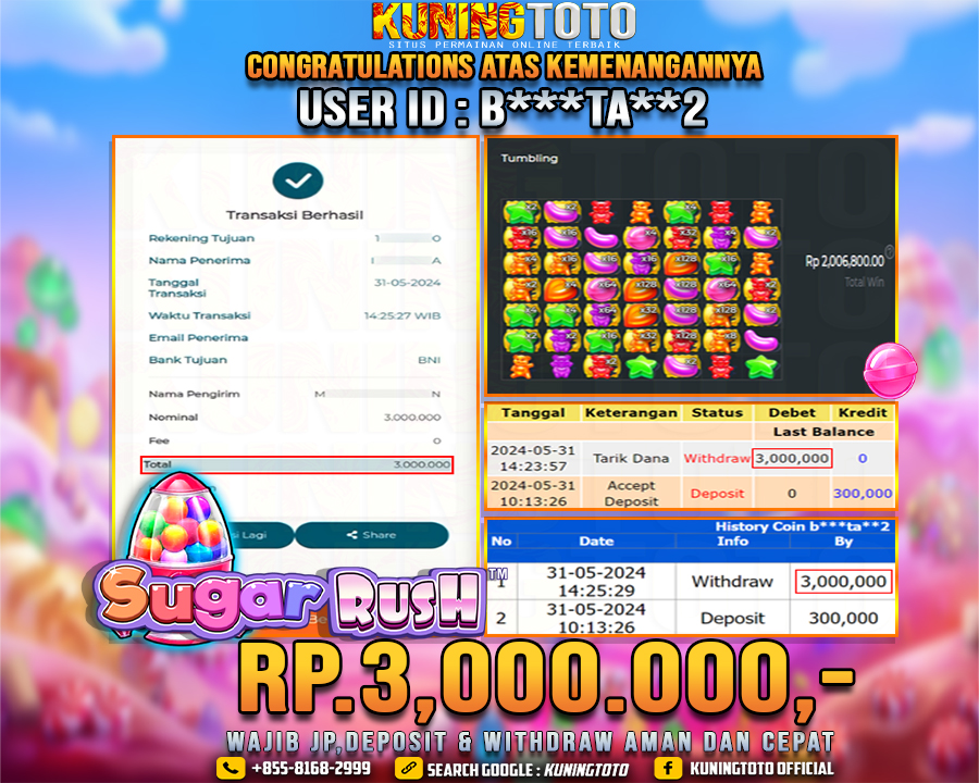 Bukti JP Slot Member KUNING TOTO 31 May 2024 Sugar Rush Memenangkan Jackpot Permainan Slot online sangat populer di kalangan…