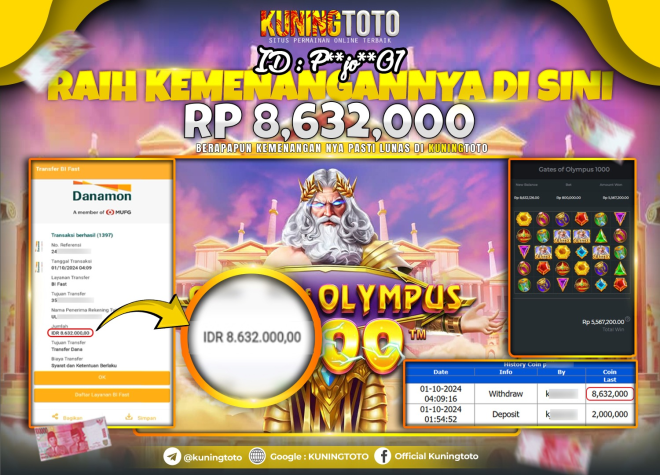 Bukti JackPot Slot Member KUNINGTOTO 01 Oktober 2024 Gates Of Olympus 1000