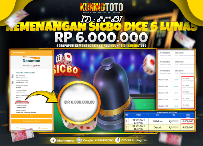Bukti JP Slot Member KUNING TOTO 01 September 2024 SICBO DICE 6