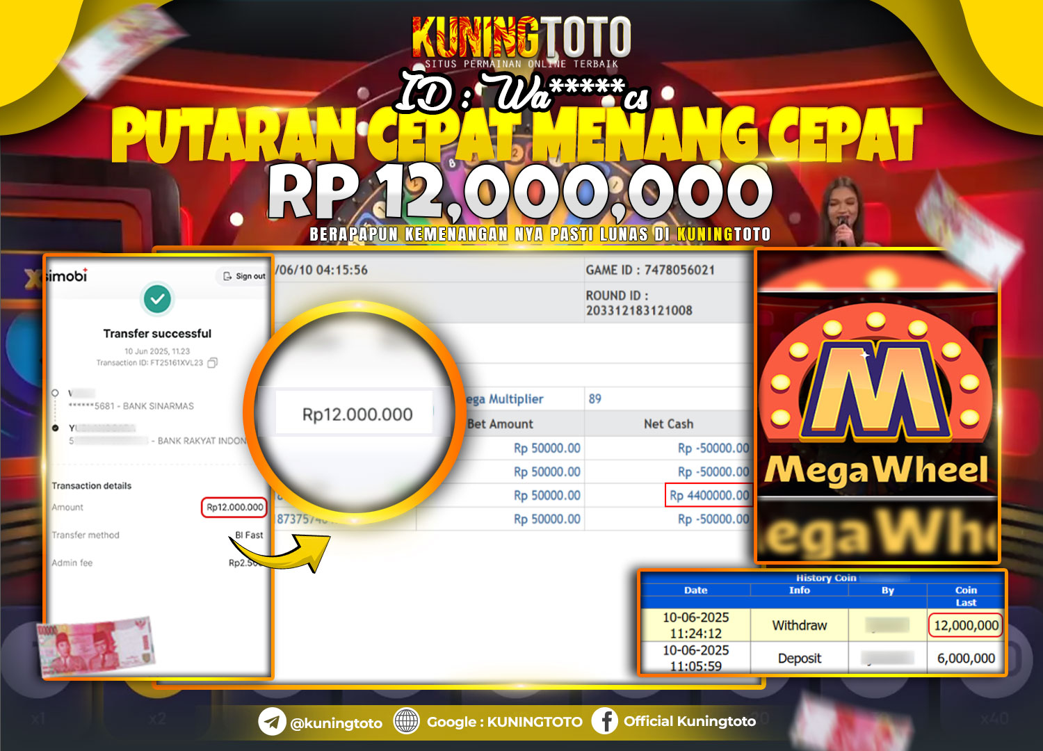 Bukti JackPot Slot Member KUNINGTOTO 10 Juni 2025 MegaWheel