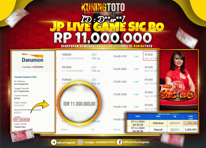 Bukti JackPot Slot Member KUNINGTOTO 07 November 2024 Live Mega Sicbo