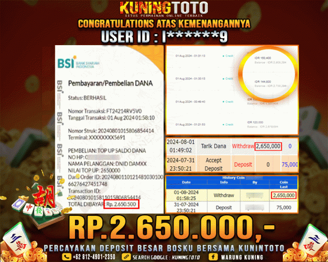 Bukti JP Slot Member KUNING TOTO 01 August 2024 Mahjong ways 1
