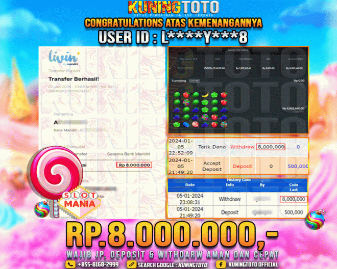 Bukti JP Slot Member KUNING TOTO 05 Januari 2024 Sweet Slot Mania