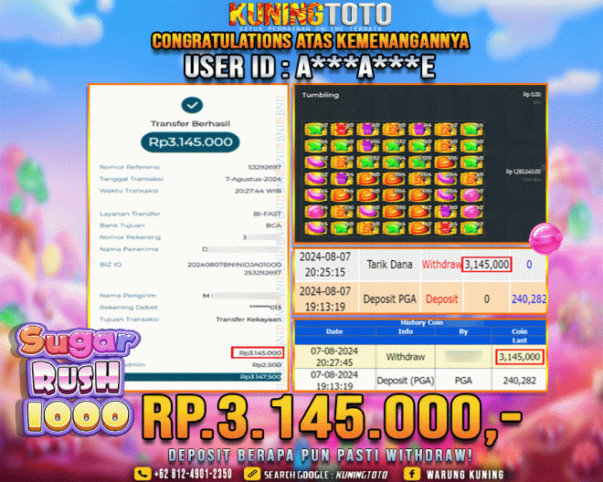 Bukti JP Slot Member KUNING TOTO 07 Agustus 2024 Sugar rush 1000