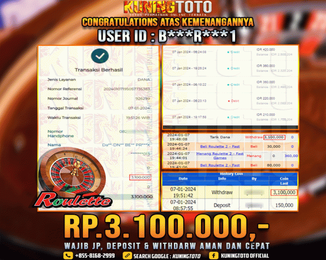 Bukti JP Slot Member KUNING TOTO 07 Januari 2024 Roulette 2 Fast