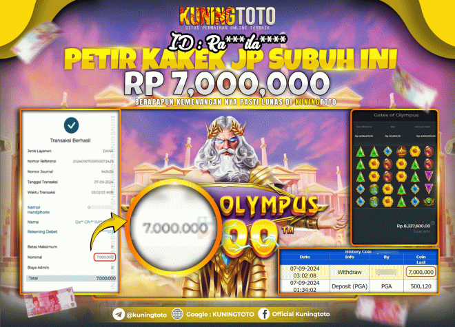 Bukti JP Slot Member KUNING TOTO 07 September 2024 Gate of Olympus