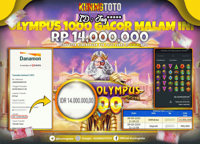 Bukti JP Slot Member KUNING TOTO 09 September 2024 Gate of Olympus x1000