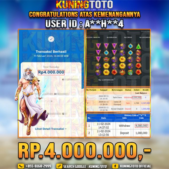 Bukti JP Slot Member KUNING TOTO 11 Febuari 2024 Gate Of Olympus