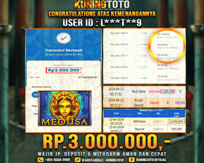 Bukti JP Slot Member KUNING TOTO 12 April 2024 Kutukan Medusa