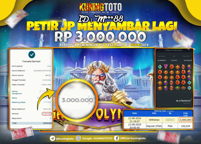 Bukti JP Slot Member KUNING TOTO 12 August 2024 Gates Of Olympus