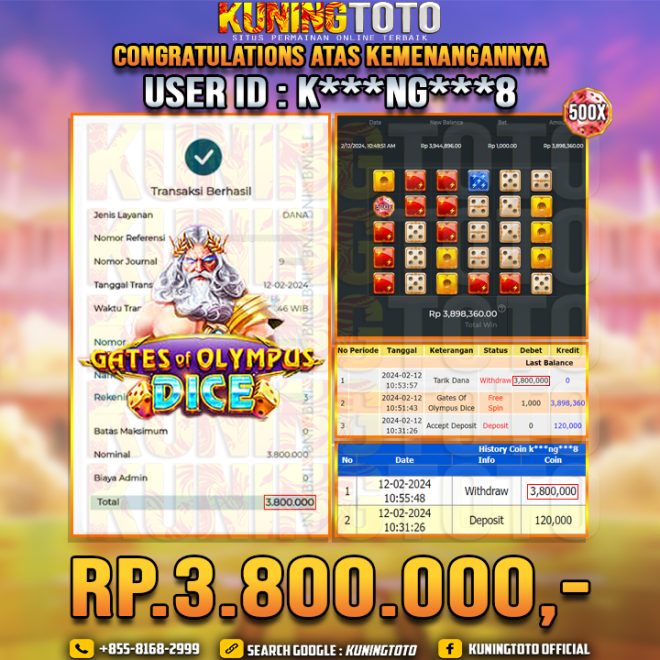 Bukti JP Slot Member KUNING TOTO 12 Febuari 2024 Gate Of Olympus Dice