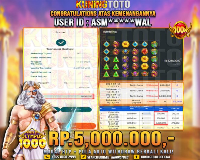 Bukti JP Slot Member KUNING TOTO 13 April 2024 Gate of Olympus x1000