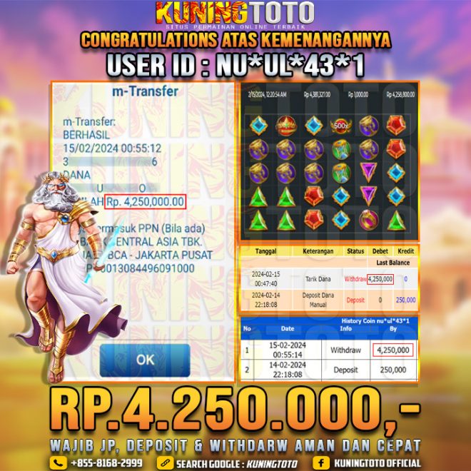 Bukti JP Slot Kuning toto 15 Febuari 2024 Gate Of Olympus 1000