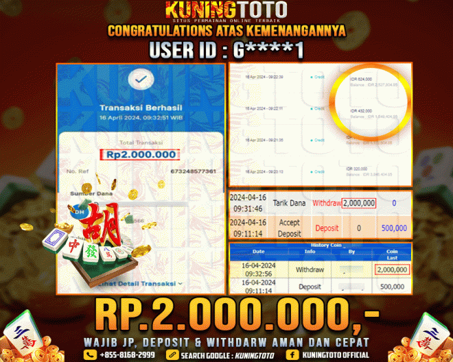 Bukti JP Slot Member KUNING TOTO 16 April 2024 Mahjong ways 1