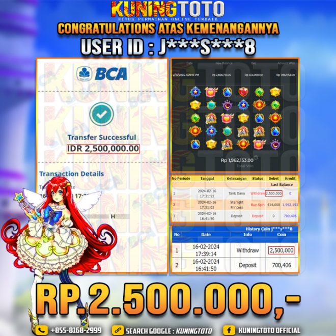 Bukti JP Slot Member KUNING TOTO 16 Febuari 2024 Starlight Princess
