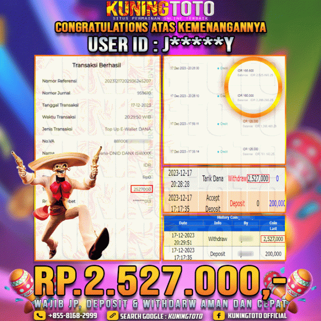 Bukti JP Slot Member KUNING TOTO 17 December 2023 Wild Bandito