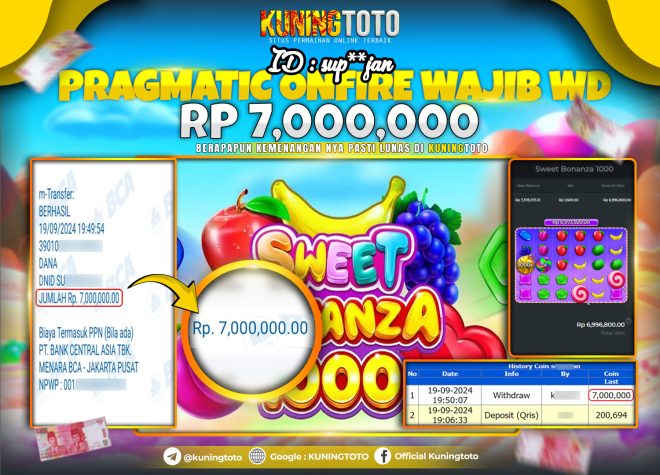 Bukti JP Slot Member KUNING TOTO 19 September 2024 Sweet Bonanza x1000
