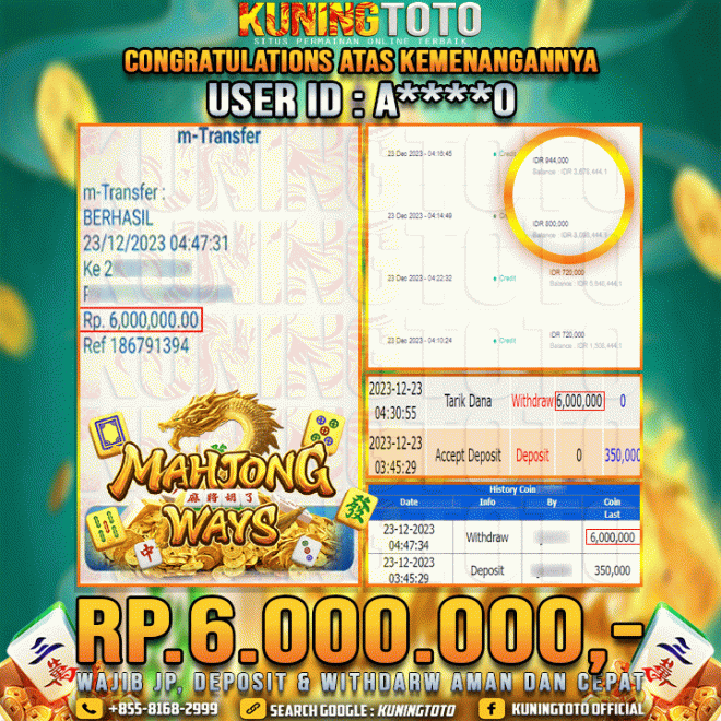 Bukti JP Slot Member KUNING TOTO 23 December 2023 Mahjong Ways 2