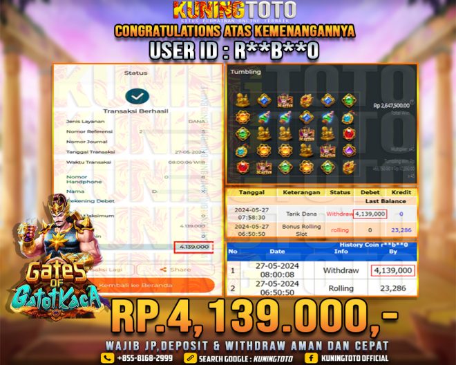 Bukti JP Slot Member KUNING TOTO 27 May 2024 Gate of Gatotkaca