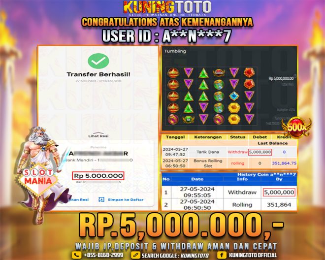 Bukti JP Slot Member KUNING TOTO 27 May 2024 Slot Mania Olympus