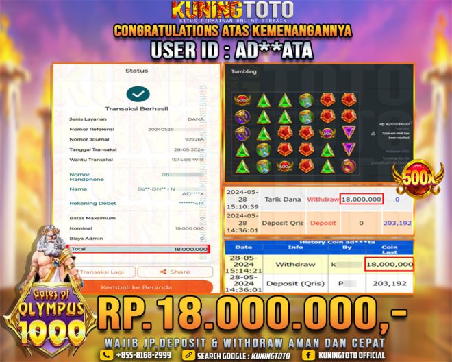 Bukti JP Slot Member KUNING TOTO 28 May 2024 Gate of Olympus 1000