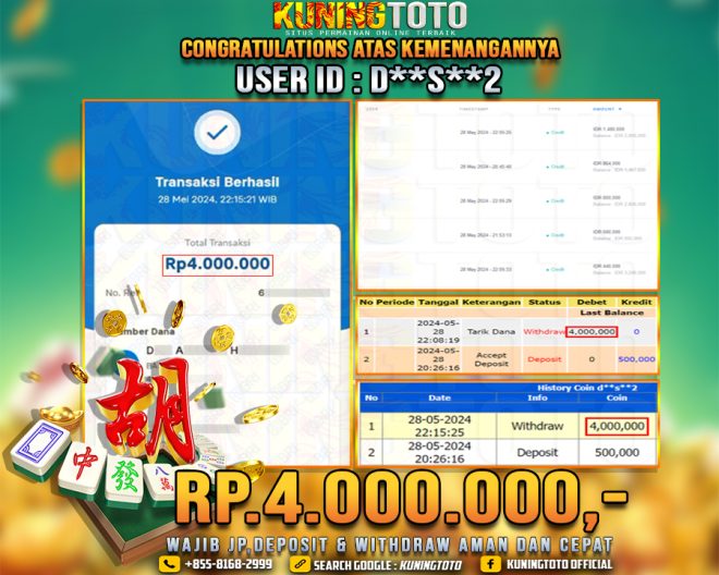 Memenangkan Jackpot Permainan Slot online sangat populer di kalangan pemain judi online di seluruh dunia. Di Indonesia sendiri, Slot online menjadi salah satu jenis permainan judi online yang sangat digemari. Pada artikel ini, kami akan membahas tentang bukti menang togel dan cara meningkatkan peluang Anda untuk memenangkan jackpot,Jackpot dari situs slot online terbesar adalah jenis keuntungan yang ditawarkan oleh agen permainan Slot online terlengkap, itulah yang dicari para pemain. Hal ini dikarenakan setiap pemain bisa memenangkan jutaan bahkan ratusan juta rupiah dari hasil kemenangan jackpot ini.