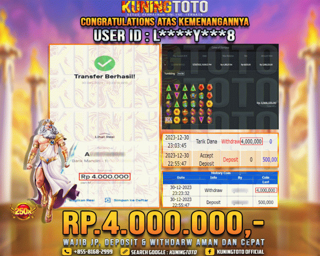 Bukti JP Slot Member KUNING TOTO 30 December 2023 Gates Of Olympus