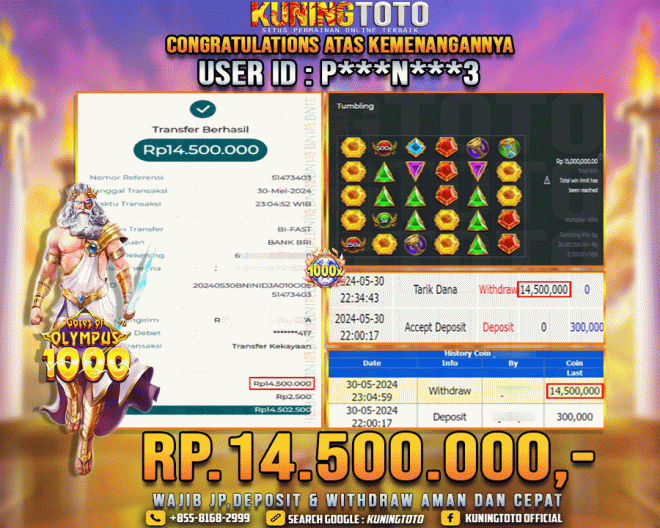 Bukti JP Slot Member KUNING TOTO 30 May 2024 Gate of Olympus x1000