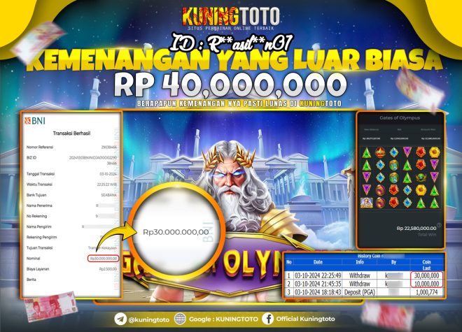 Bukti JackPot Slot Member KUNINGTOTO 03 Oktober 2024 Gates Of Olympus