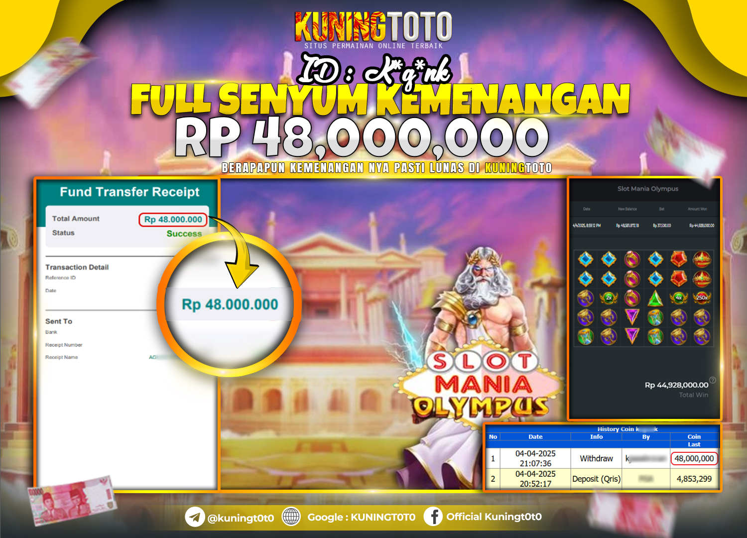 Bukti JackpoT Slot Member KUNING TOTO 04 April 2025 Slot Mania Olympus