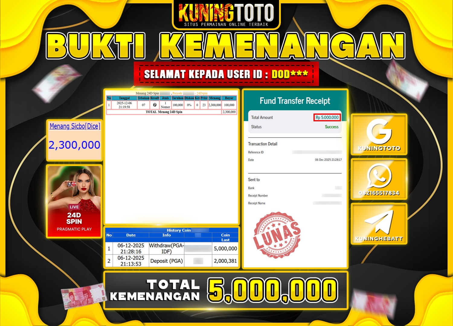 Bukti JackpoT Slot Member KUNINGTOTO 06 DESEMBER 2025 24D Spin