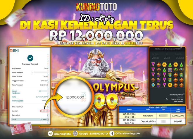 Bukti JackPot Slot Member KUNINGTOTO 07 Oktober 2024 Gates Of Olympus 1000