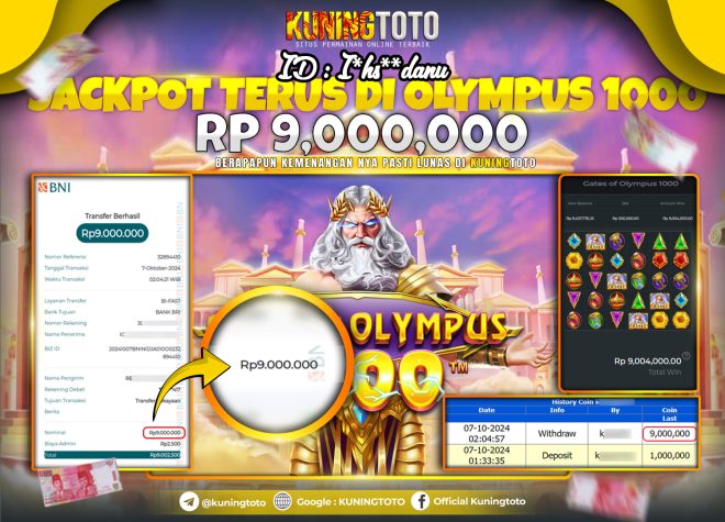 Bukti JP Slot KuningToto 07 Oktober 2024 Gates Of Olympus 1000