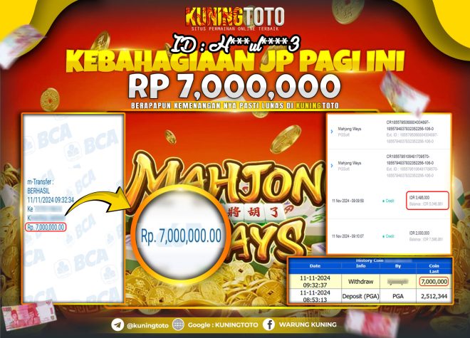 Bukti JackPot Slot Member KUNINGTOTO 11 November 2024 Mahjong Ways