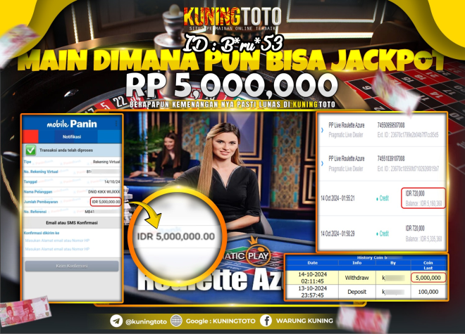 Bukti JackPot Slot Member KUNINGTOTO 14 Oktober 2024 PP Live Roulette Azure