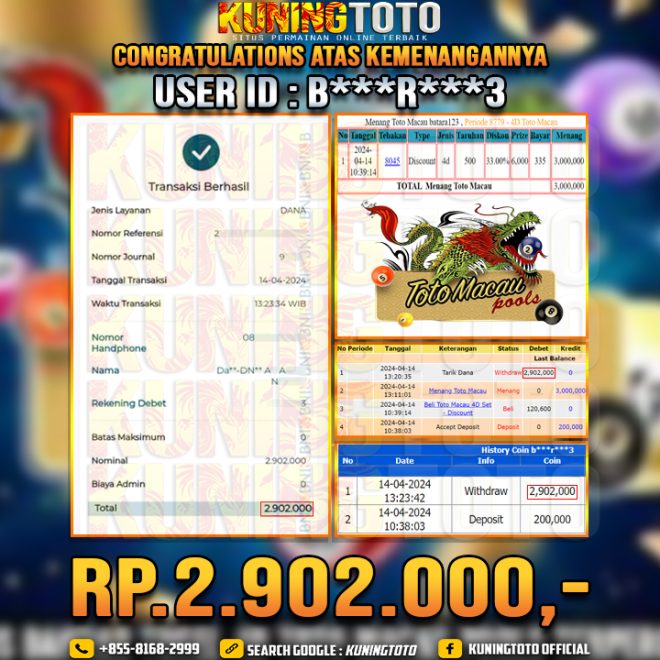 Bukti JP Togel Member KUNING TOTO 14 April 2024 Totomacau 4D