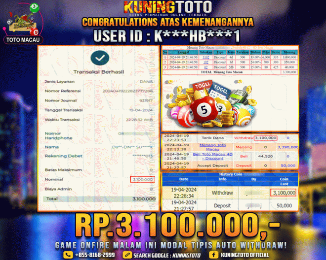 Bukti JP Togel Member KUNING TOTO 19 April 2024 Totomacau 4D 3D 2D