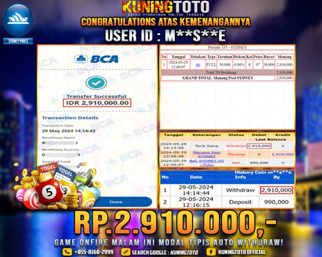 Bukti JP Togel Member KUNING TOTO 29 May 2024 Sydney Pools 2D