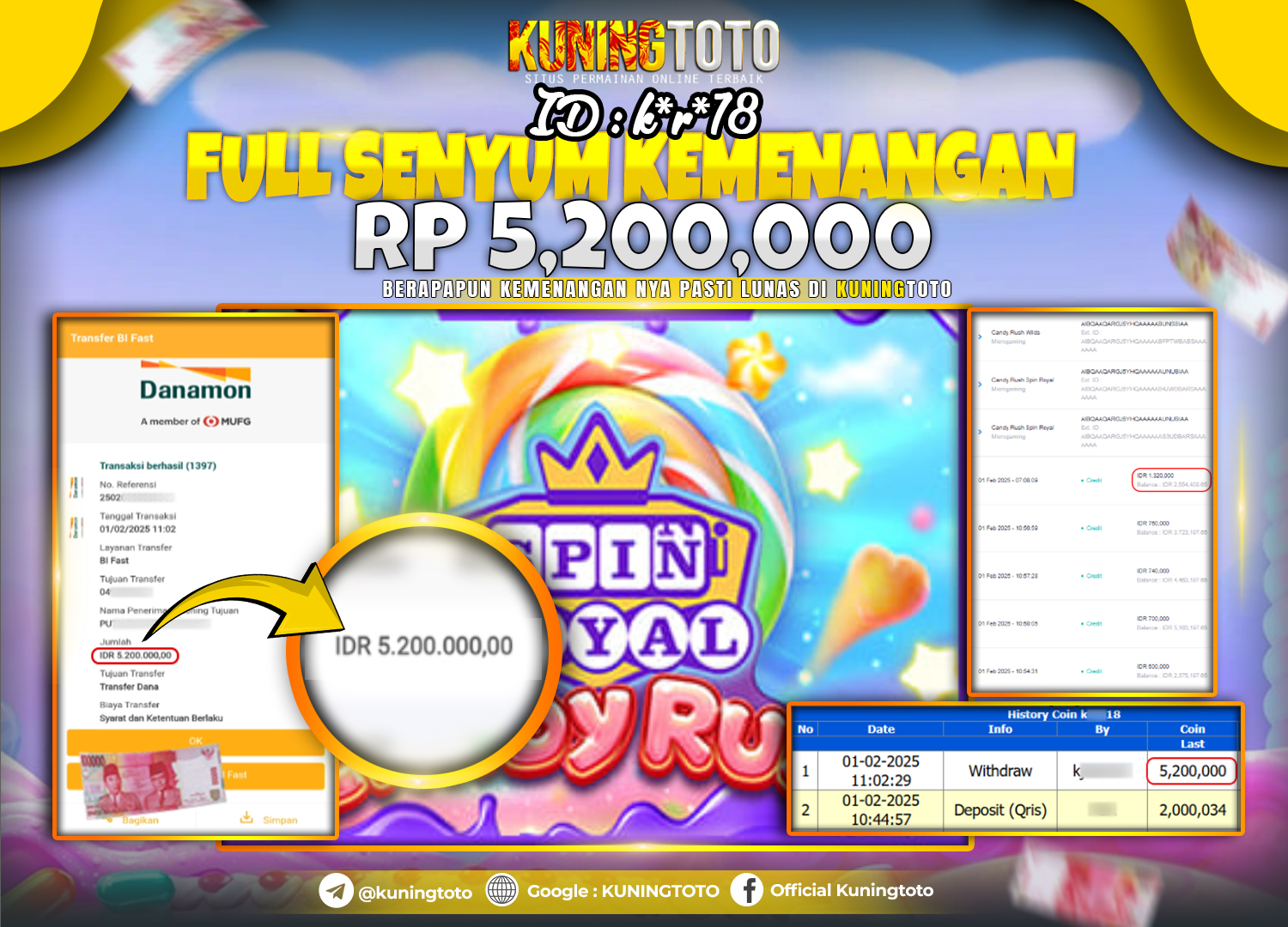 Bukti JackPot Slot Member KUNINGTOTO 01 Februari 2025 Candy Rush Spin Royal
