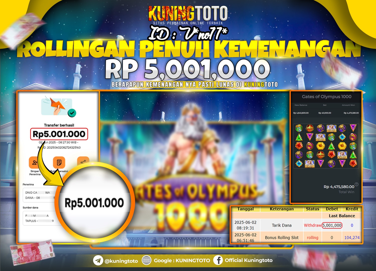Bukti JackPot Slot Member KUNINGTOTO 02 Juni 2025 Slot Gates Of Olympus 1000