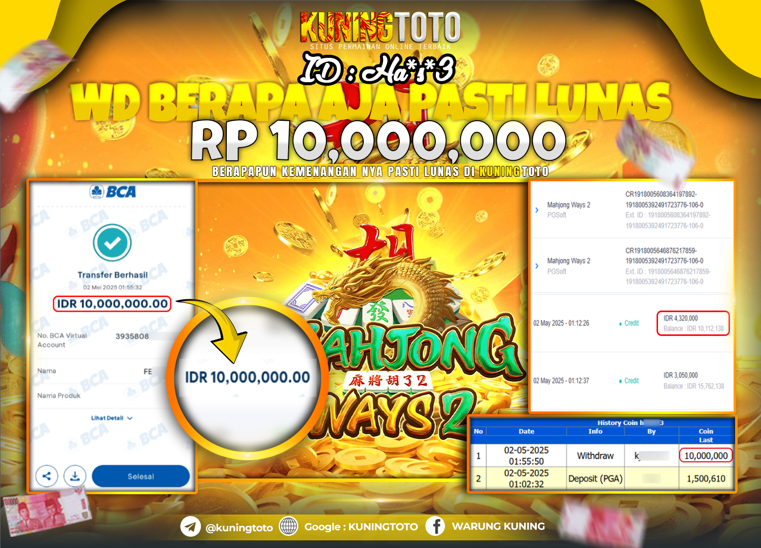 Bukti JackPot Slot Member KUNINGTOTO 02 Mei 2025 Slot Mahjong Ways 2