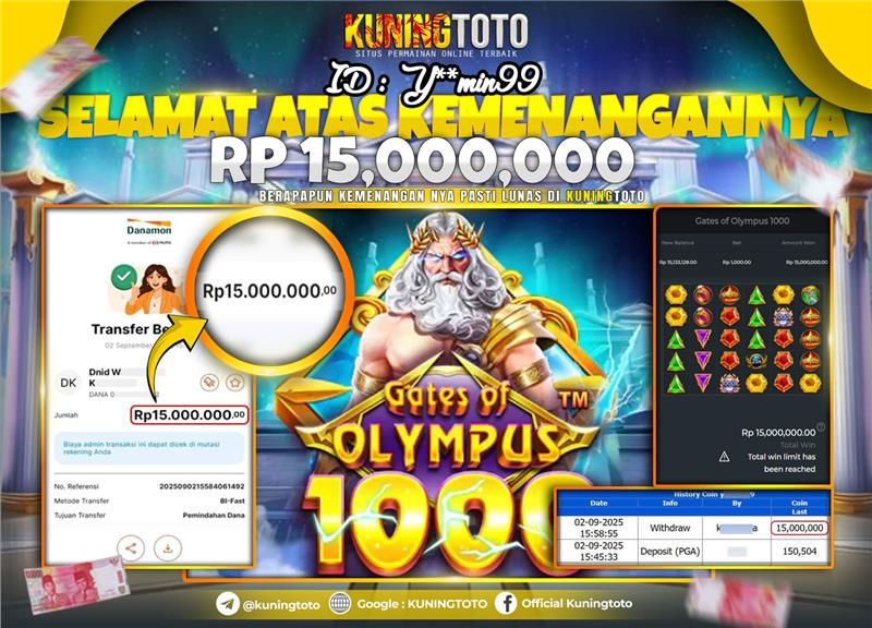 Bukti Kemenangan Slot KuningToto 02 September 2025 Slot Gates of Olympus 1000