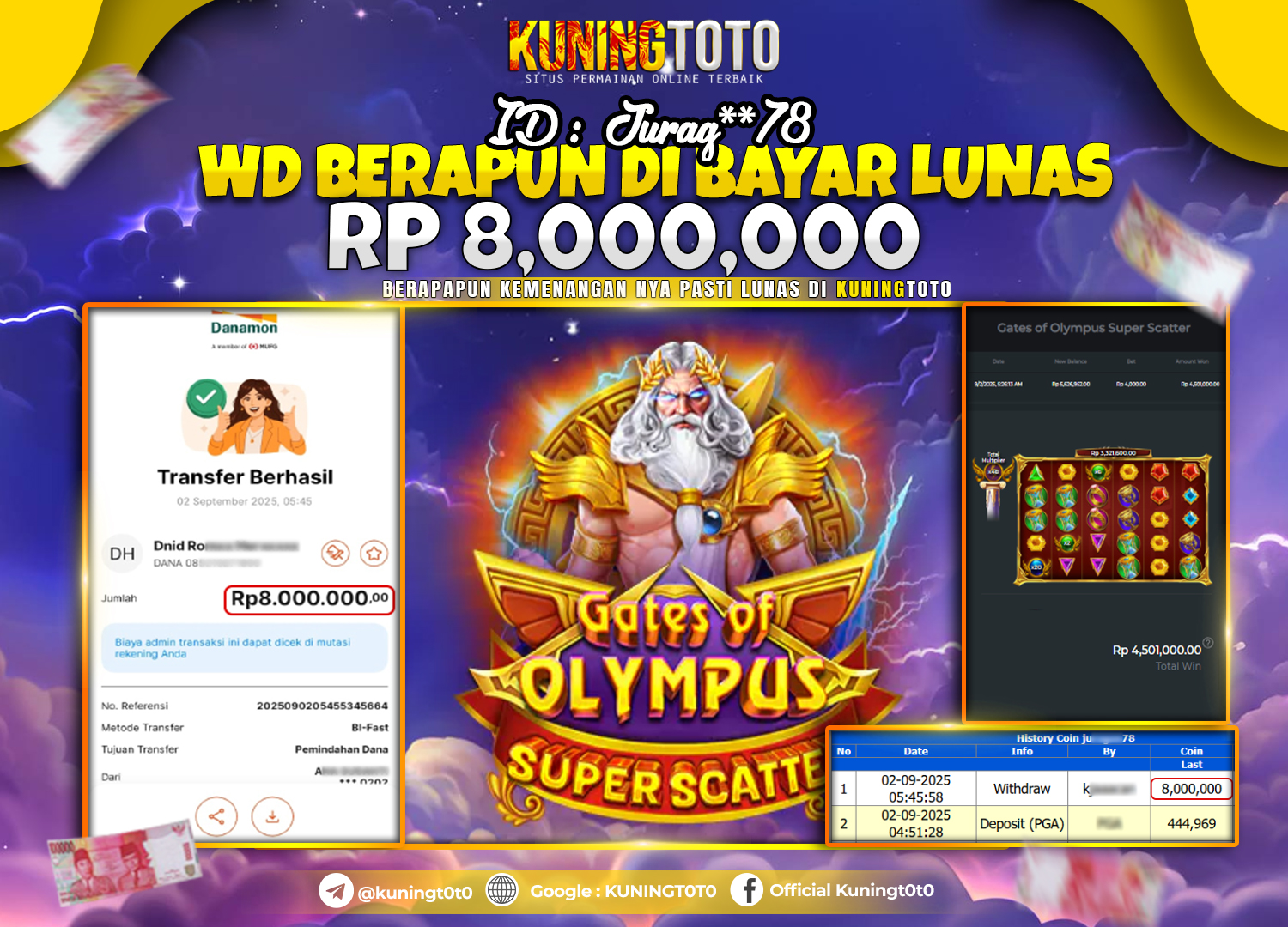 Bukti JackPot Slot Member KUNINGTOTO 02 September 2025 Slot Gates of Olympus Super Scatter