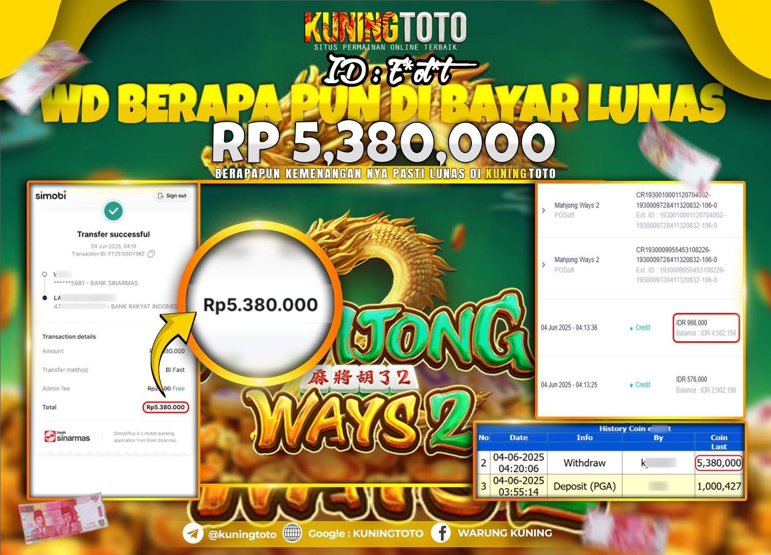 Bukti JackPot Slot Member KUNINGTOTO 04 Juni 2025 Slot Mahjong Ways 2