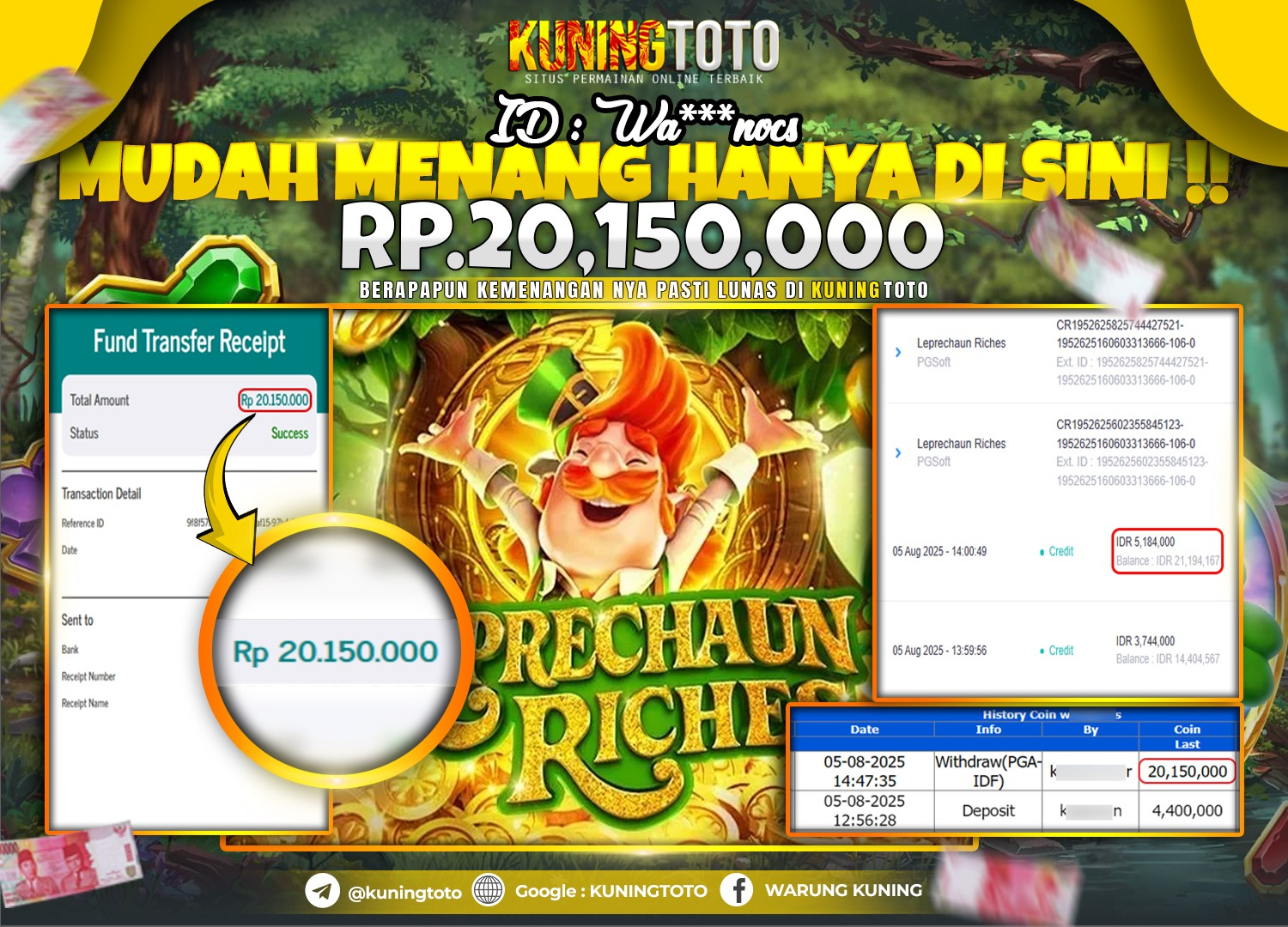 Bukti JackPot Slot Member KUNINGTOTO 05 Agustus 2025 Slot Leprechaun Riches
