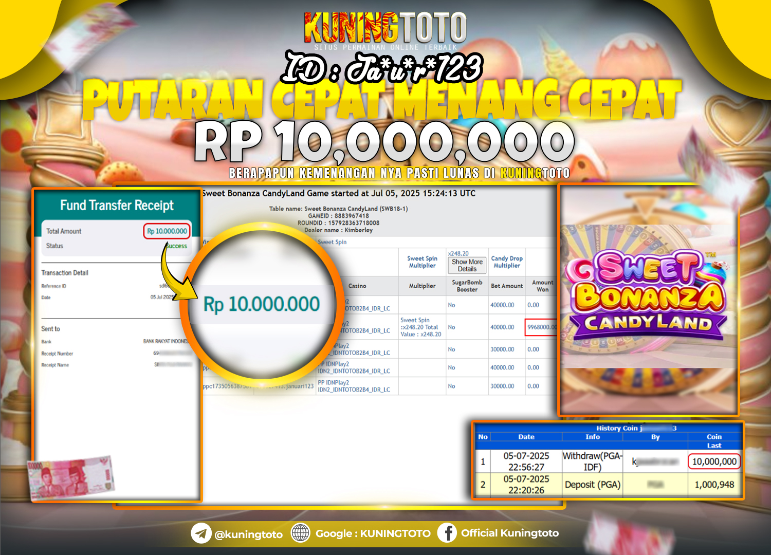 Bukti JackPot Slot Member KUNINGTOTO 05 Juli 2025 Slot Sweet Bonanza Candyland