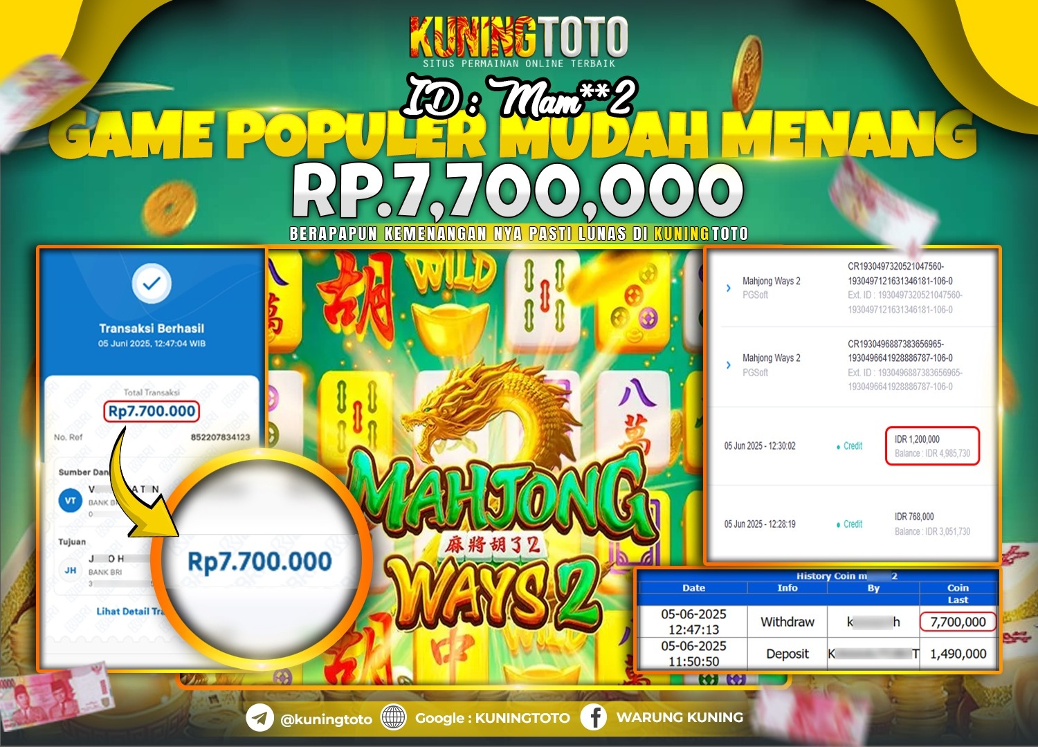 Bukti JackPot Slot Member KUNINGTOTO 05 Juni 2025 Slot Mahjong Ways 2