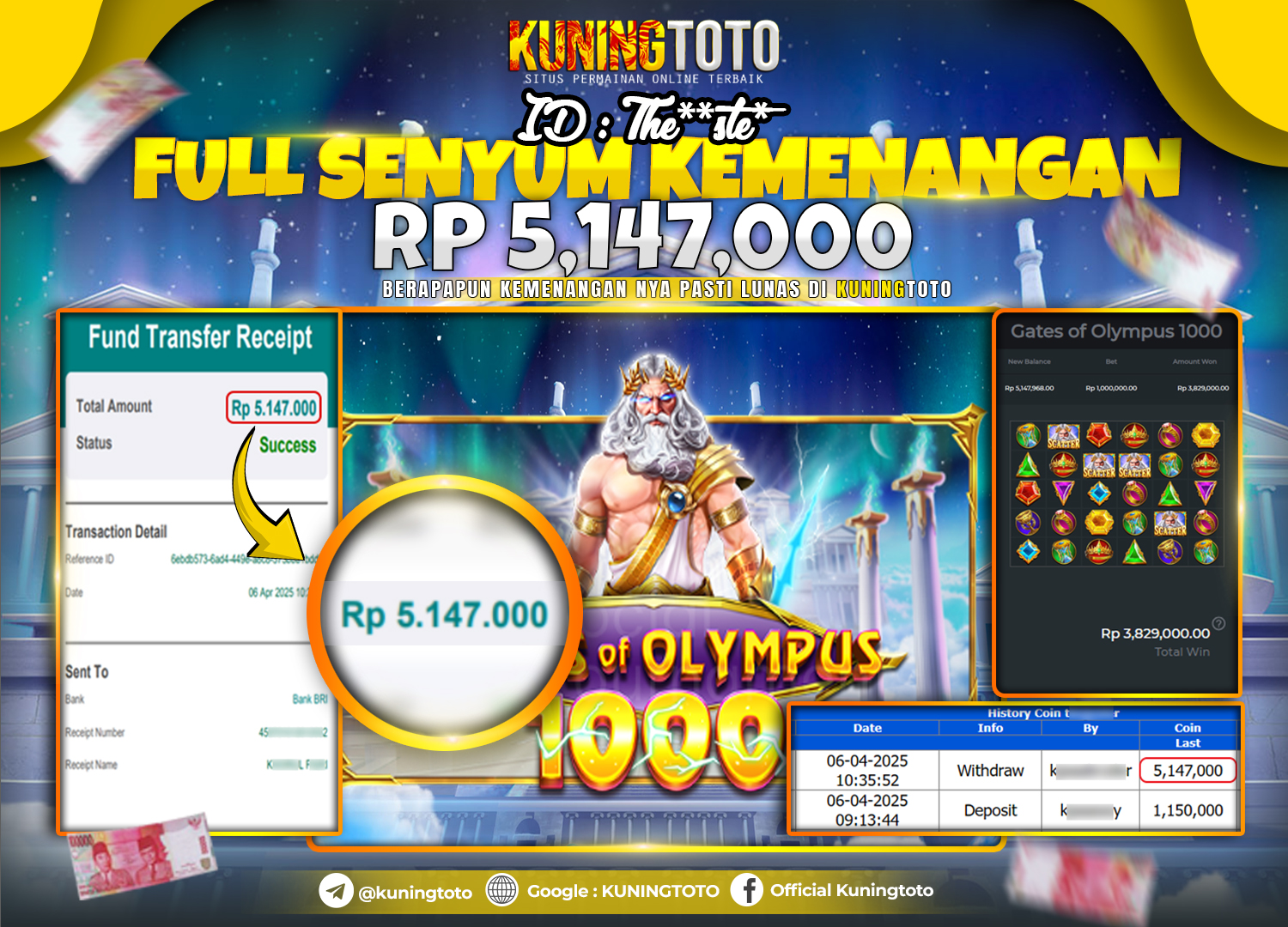 Bukti Kemenangan Slot KuningToto 06 April 2025 Slot Gates Of Olympus 1000